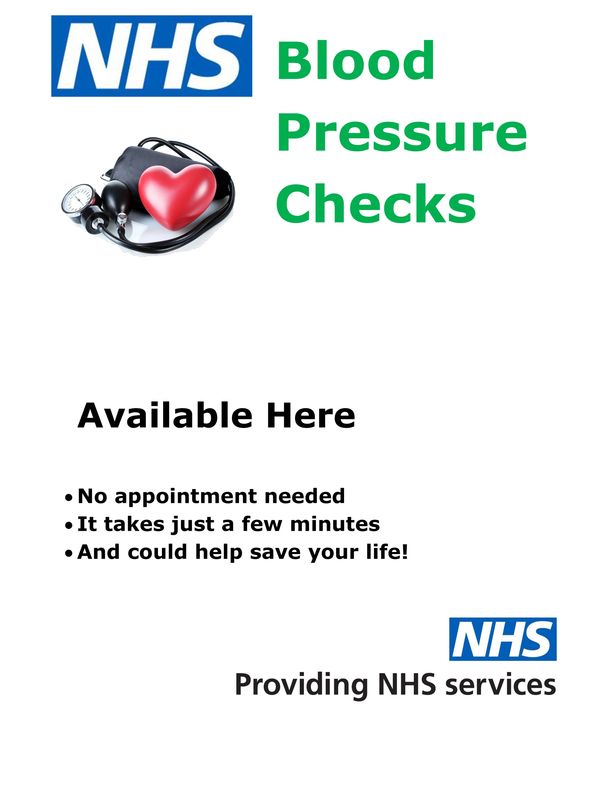 Free NHS Blood Pressure (BP) checks are available to anyone over 40 years old.